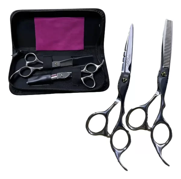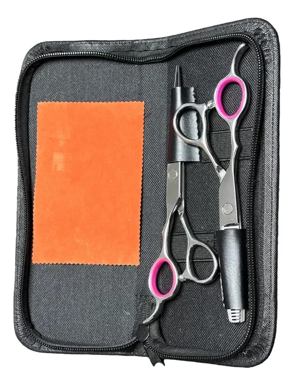 Kit Tijeras Peluqueria Barberia Corte + Pulir Zurdo Viggo Plateado 6"